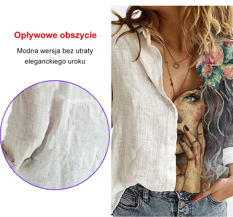 Luźna koszula z długimi rękawami, pół-nadruk